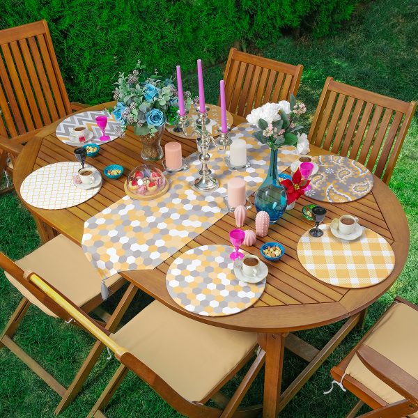 6+1’li Sarı & Gri Geometrik Özel Tasarımlı Supla Runner Seti