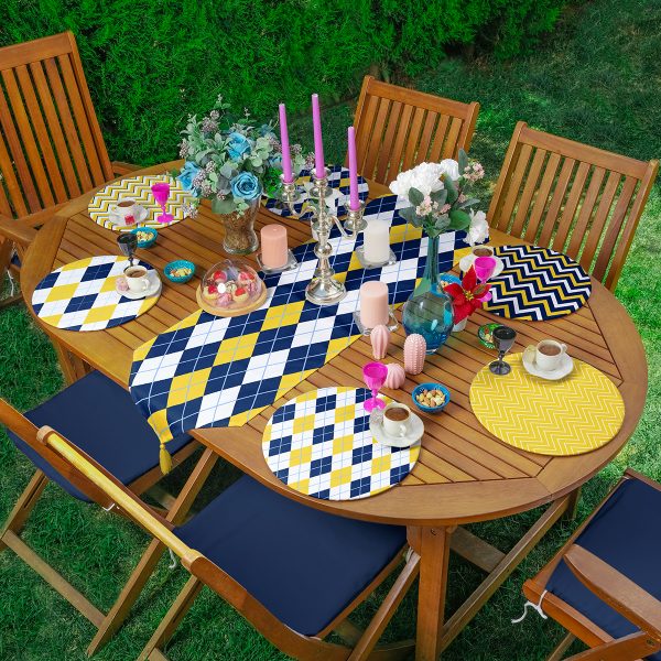 6+1’li Sarı Lacivert Zigzag & Ekose Tasarımlı Supla Runner Seti