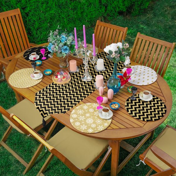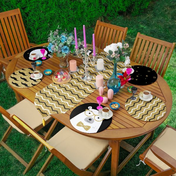 6+1’li Siyah Beyaz Gold Detaylı Özel Tasarım Supla Runner Seti