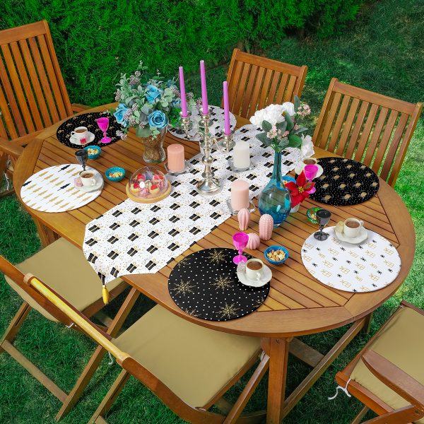 6+1’li Gold Detaylı Siyah Beyaz Yılbaşı Temalı Supla Runner Seti