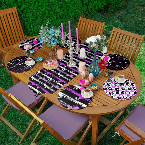 6+1’li Açık Mor Renkli Özel Tasarım Çizimli Supla Runner Seti