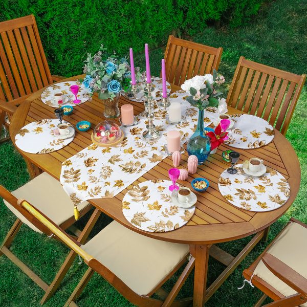 6+1’li Altın Varaklı Yaprak Özel Tasarım Supla Runner Seti