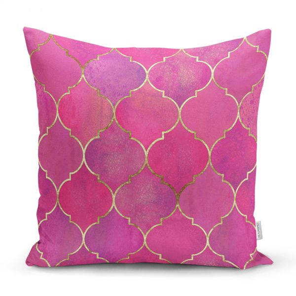 Pembe Altın Varaklı Ogea Desenli Dekoratif Yastık Kırlent Kılıfı