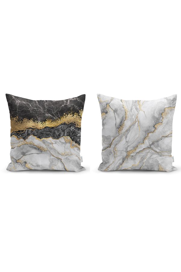 Siyah Mermer Zeminli 2’li Yastık Kırlent Kılıf Seti
