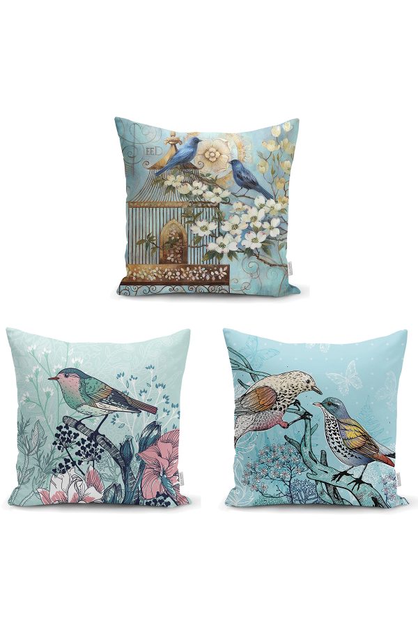 Saka Kuşlu Dijital Baskılı Dekoratif Raşel Kadife Yastık Kırlent Kılıfı