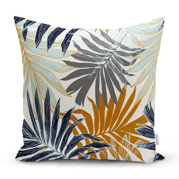 Kahverengi Ve Gri Yaprak Desenli Kırlent Kılıfı