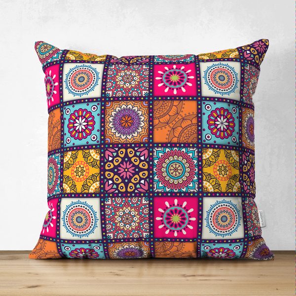 Renkli Baklava Desenli Dijital Baskılı Yastık Kırlent Kılıfı