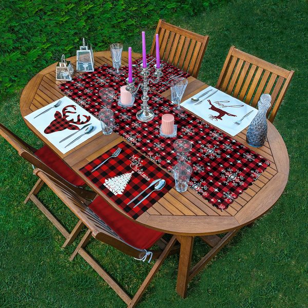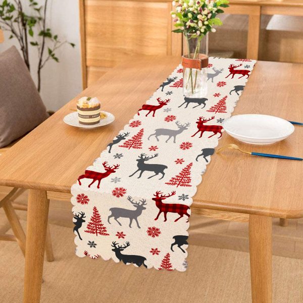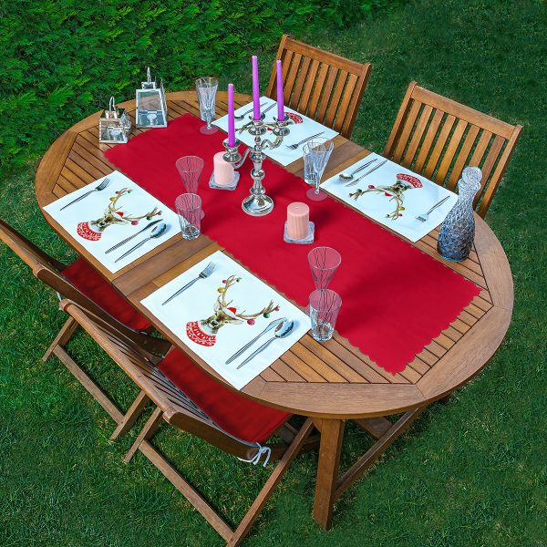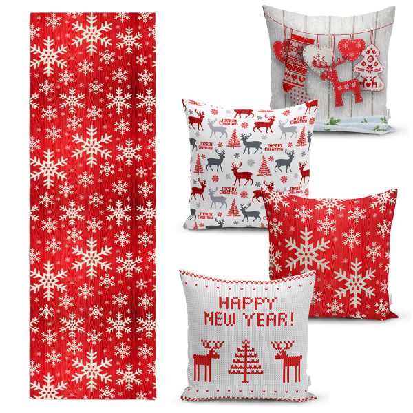 4+1 Yılbaşı Kırmızı & Geyik Tasarımlı Amerikan Servis & Runner Seti