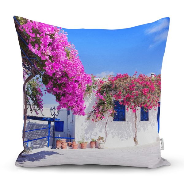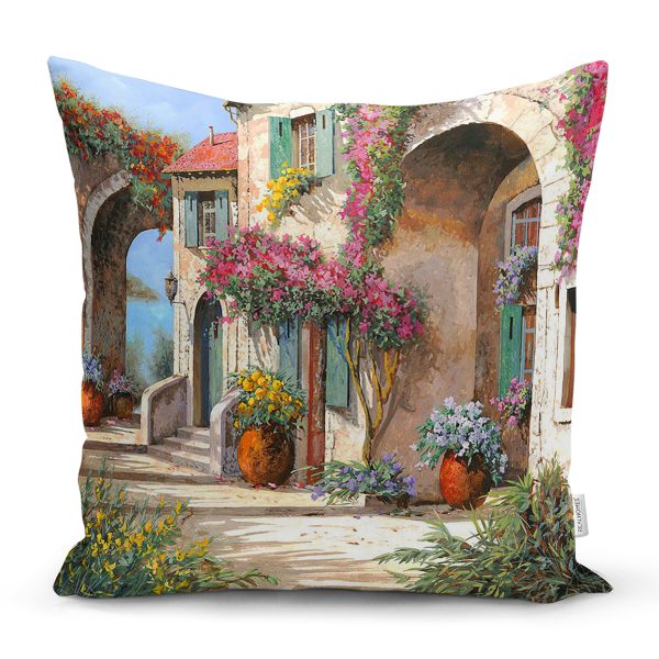 Çiçek Sokağı Dijital Baskılı Dekoratif Yastık Kırlent Kılıfı