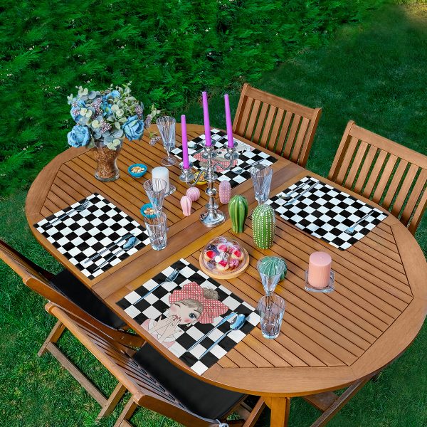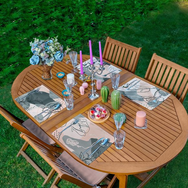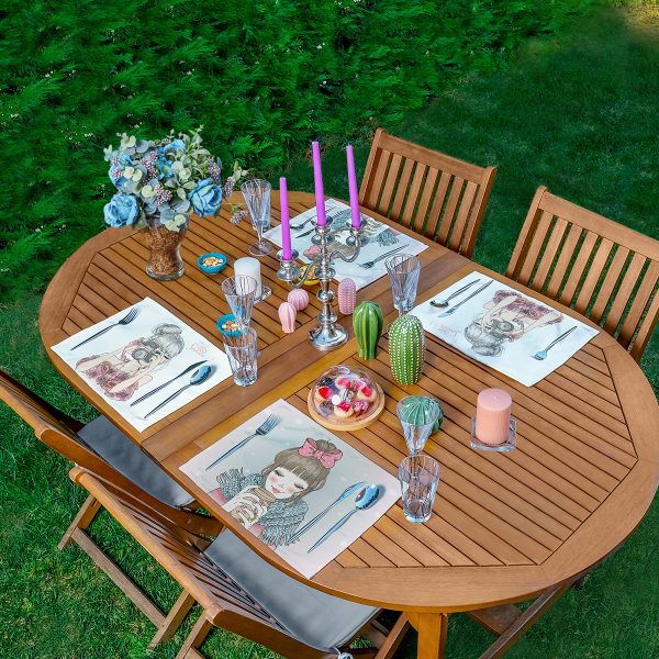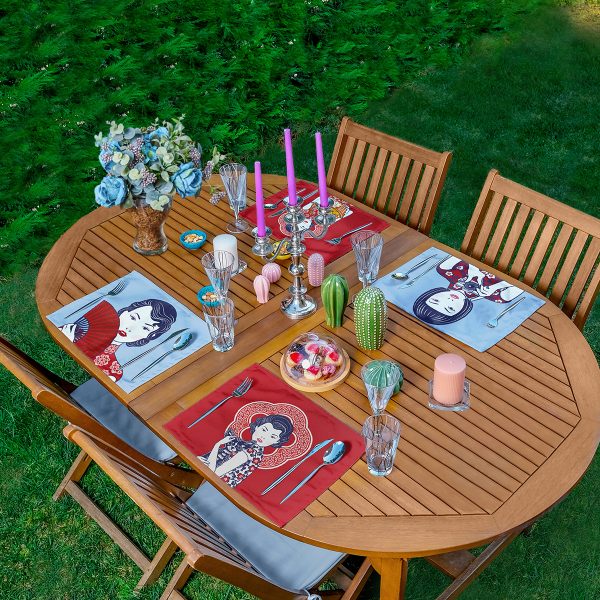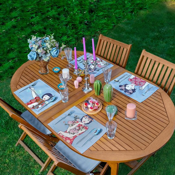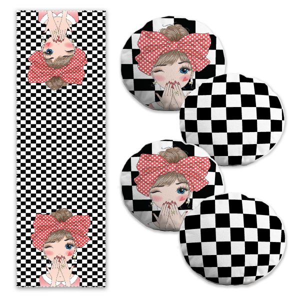 Dama Zeminli Fashion Girl Tasarımlı 4 Yuvarlak Kırlent Kılıfı ve 1 Runner Seti