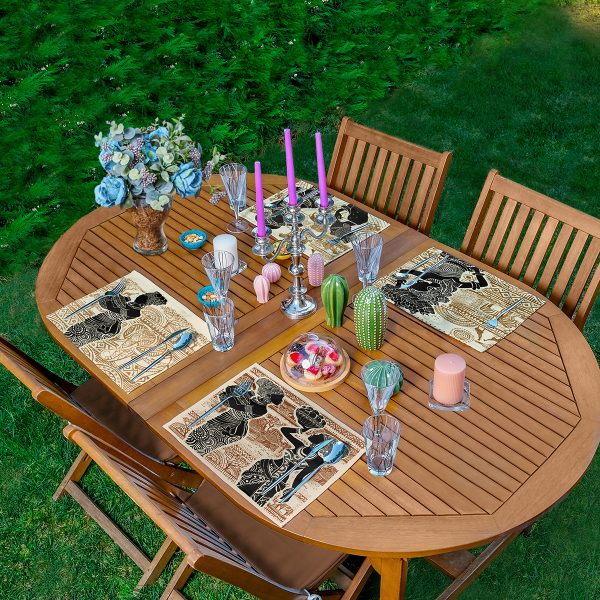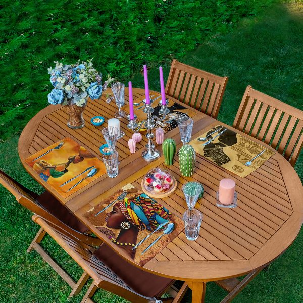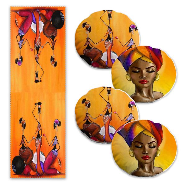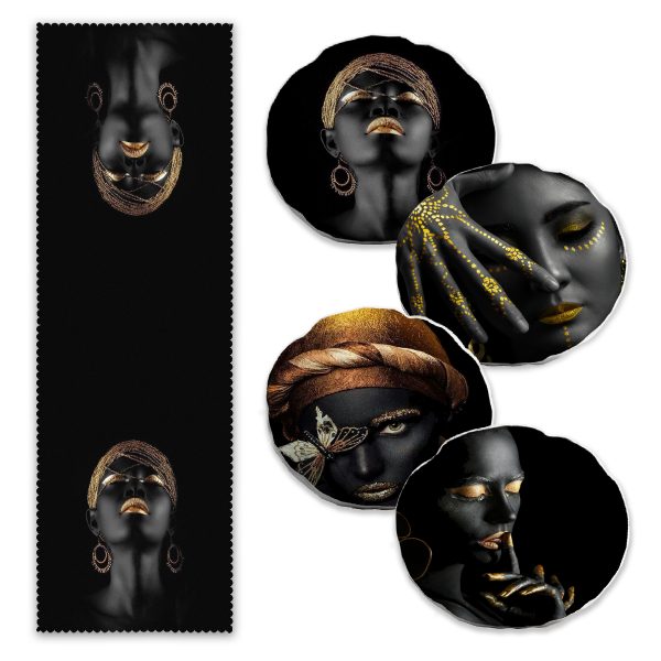 Siyahi Arap Kadın Tasarımlı 4 Yuvarlak Kırlent Kılıfı ve 1 Runner Seti