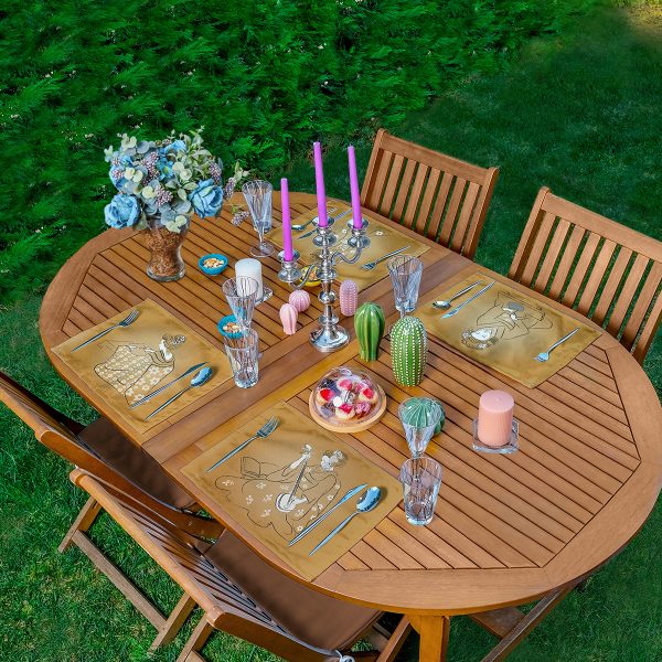 Arap Kadınlar Motifli 4 Yuvarlak Kırlent Kılıfı ve 1 Runner Seti