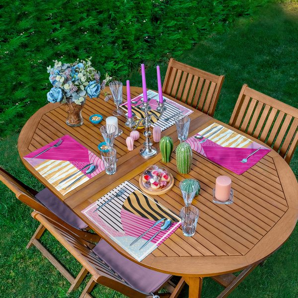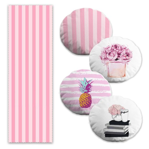 Pembe Çizgili 4 Yuvarlak Kırlent Kılıfı ve 1 Runner Seti