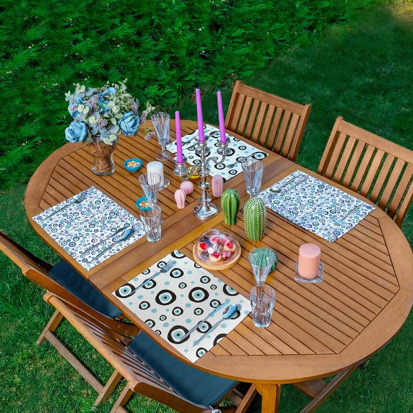 Mavinin Uyumu Tasarımlı 4 Yuvarlak Kırlent Kılıfı ve 1 Runner Seti