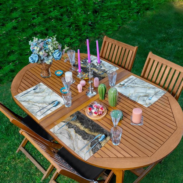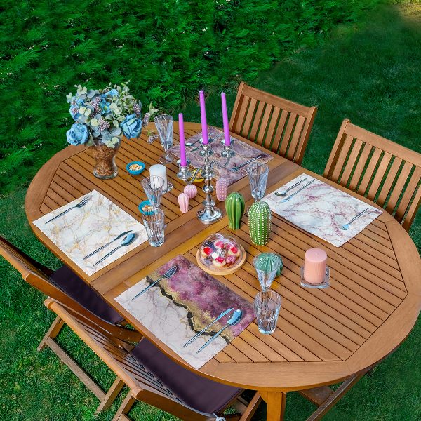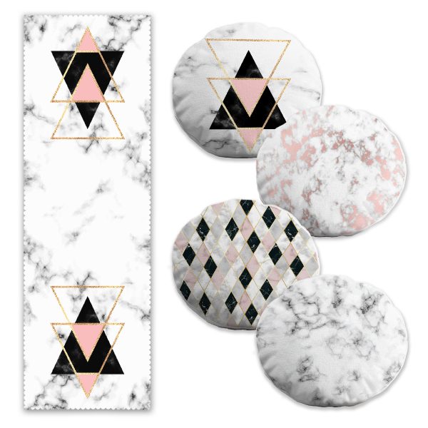 Mermer Zeminli Geometrik Çizimler 4 Yuvarlak Kırlent Kılıfı ve 1 Runner Seti
