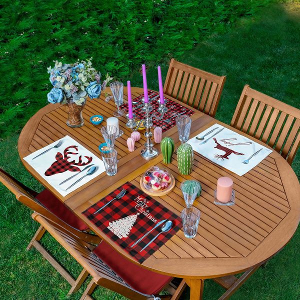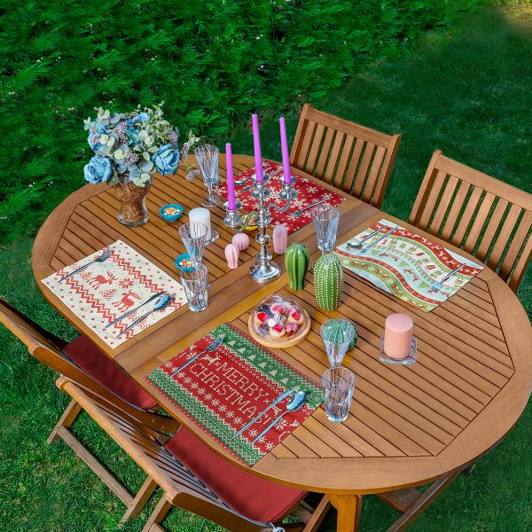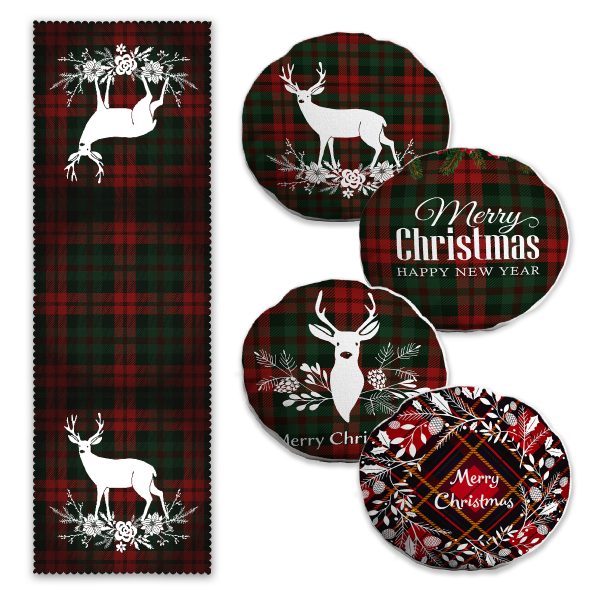 Ekose Zemin Mery Christmas Tasarımlı 4 Yuvarlak Kırlent Kılıfı ve 1 Runner Seti