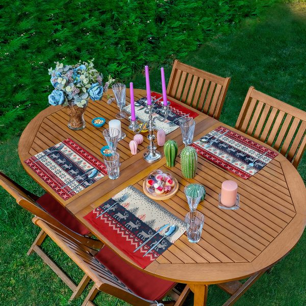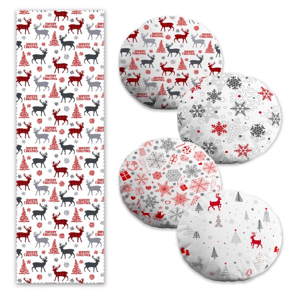 Mery Christmas Geyik Desenli 4 Yuvarlak Kırlent Kılıfı ve 1 Runner Seti
