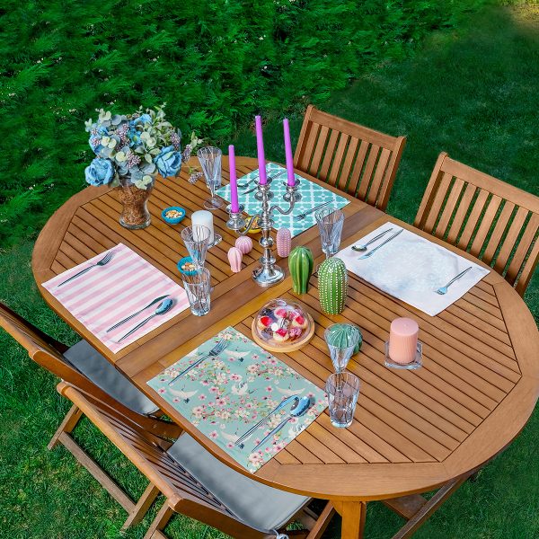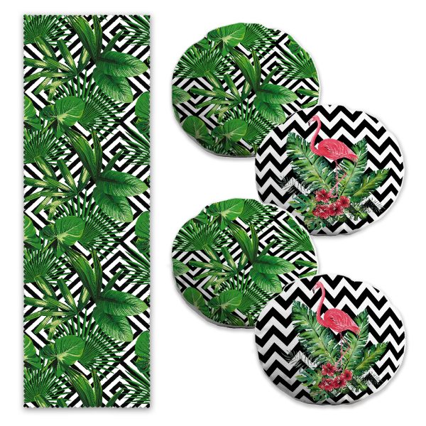 3D Yaprak ve Flamingo Tasarımlı 4 Yuvarlak Kırlent Kılıfı ve 1 Runner Seti