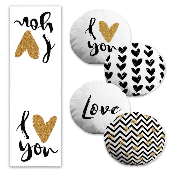 I Love You Motifli 4 Yuvarlak Kırlent Kılıfı ve 1 Runner Seti