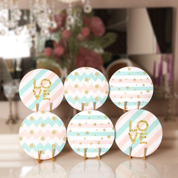 6’lı Renkli Çizgili Zemin Love Temalı Servis Altlığı & Supla
