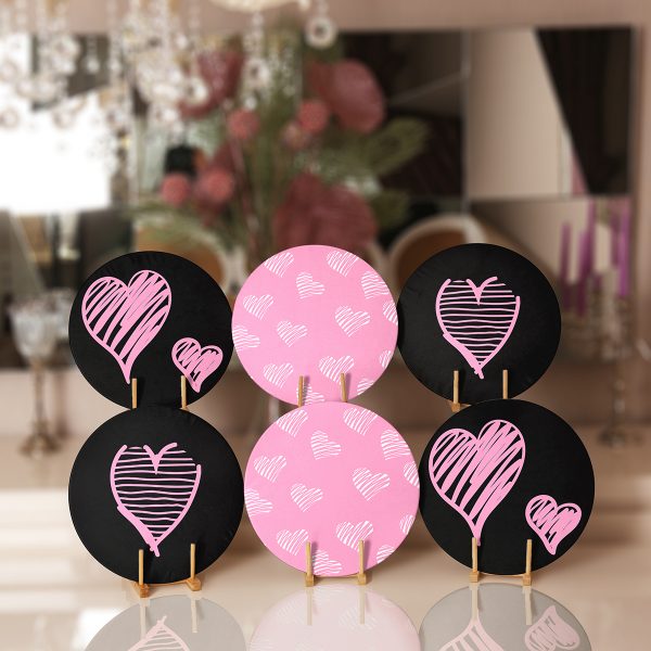 6’lı Siyah Pembe Özel Tasarım Sevgili Temalı Servis Altlığı & Supla
