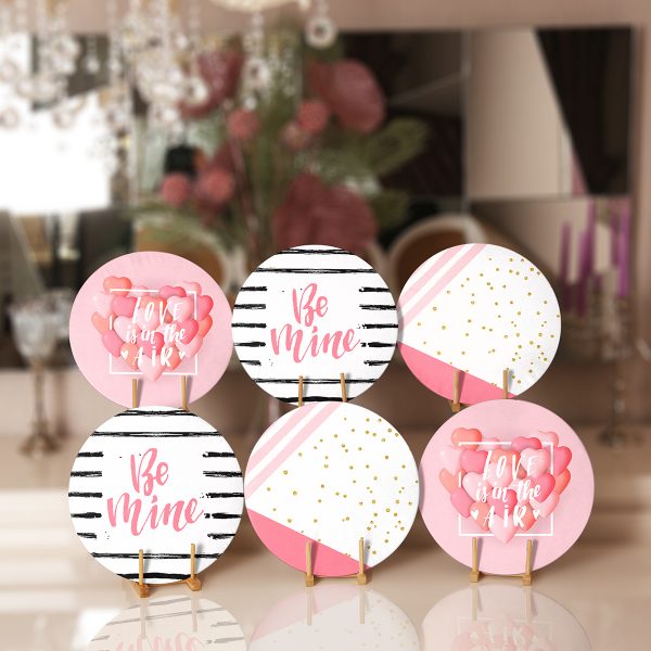 6’lı Pembe Özel Tasarım Sevgililer Günü Temalı Servis Altlığı & Supla