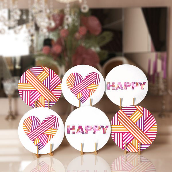 6’lı Neon Renkli Happy Temalı Özel Tasarım Servis Altlığı & Supla