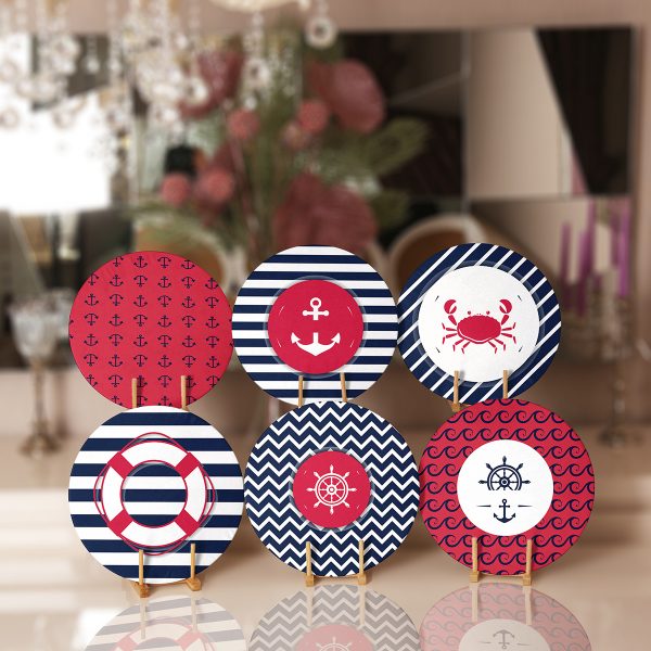 6’lı Çapa Özel Tasarımlı Denizci Temalı Servis Altlığı & Supla