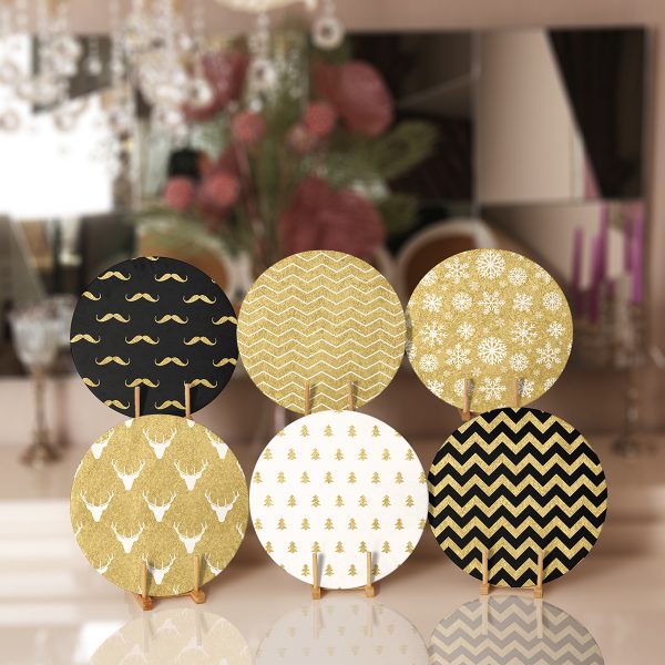 6’lı Altın Varaklı Özel Tasarım Yılbaşı Temalı Servis Altlığı & Supla