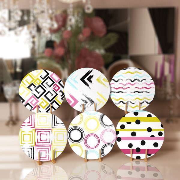 6’lı Renkli Geometrik Pop-Art Desen Tasarımlı Servis Altlığı & Supla
