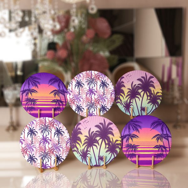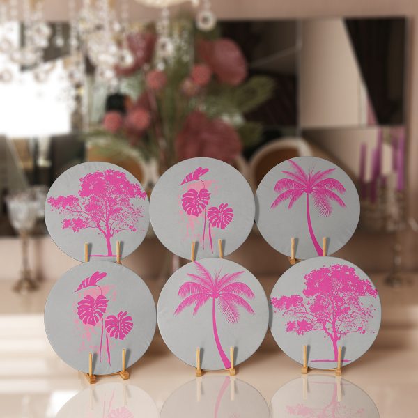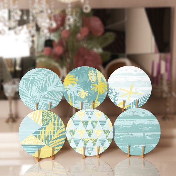 6’lı Renkli Palmiye Ağaçları Özel Tasarımlı Servis Altlığı & Supla