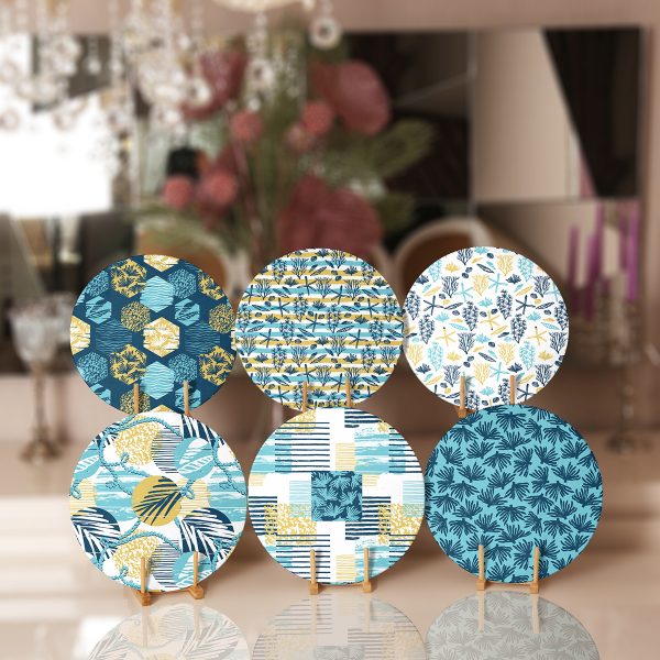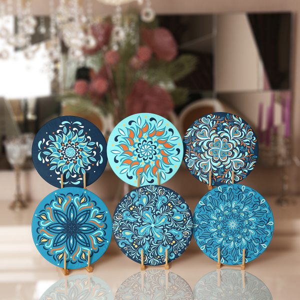 6’lı Mavi Tonlarında Mandala Tasarımlı Servis Altlığı & Supla
