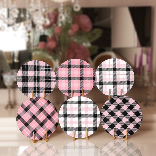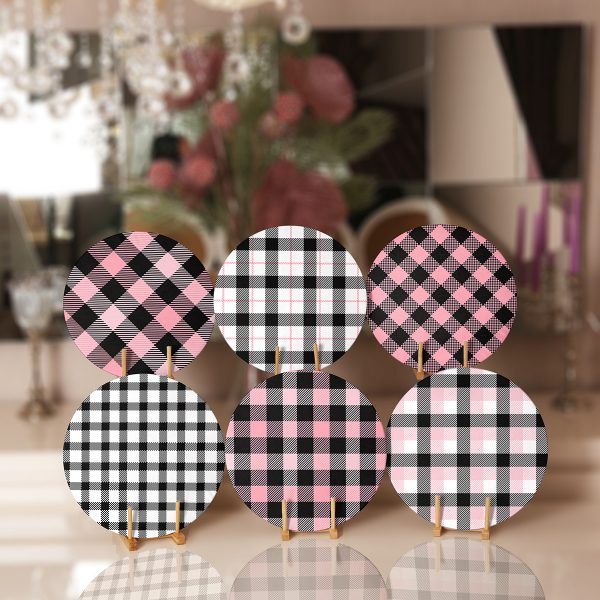 6’lı Beyaz Pembe Ekose Tasarımlı Servis Altlığı & Supla