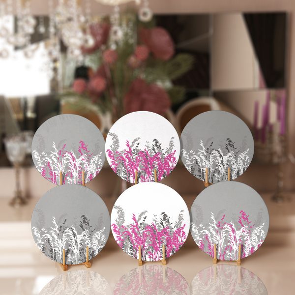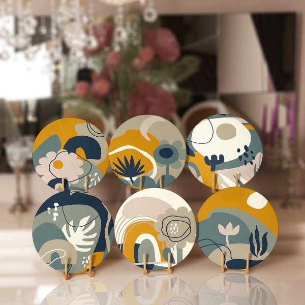 6’lı Kolaj Renkli Özel Tasarım Bitki Desenli Servis Altlığı & Supla