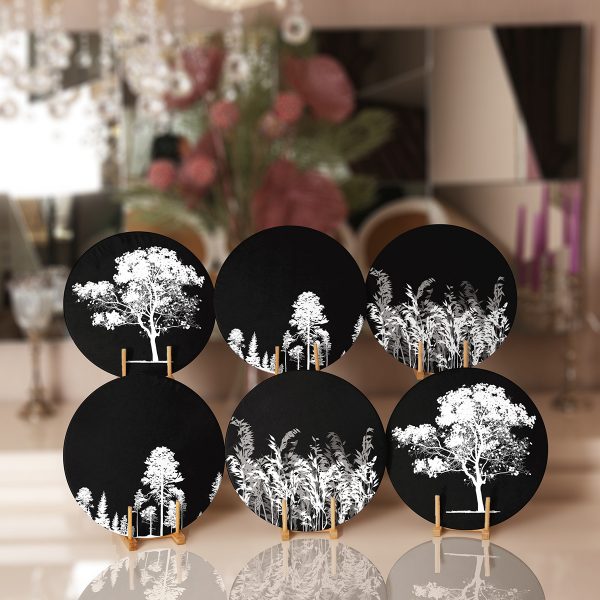 6’lı Siyah Zemin Ot Ağaç Tasarımlı Servis Altlığı & Supla