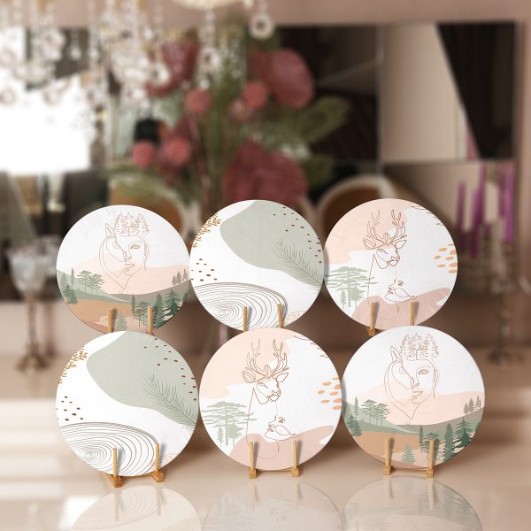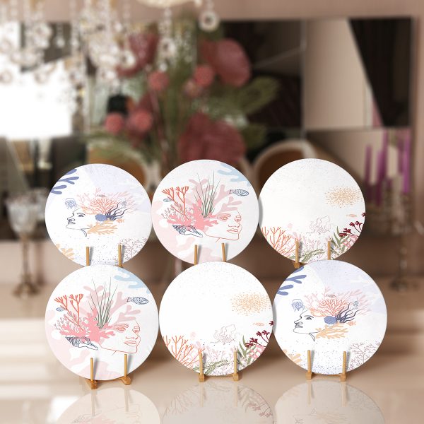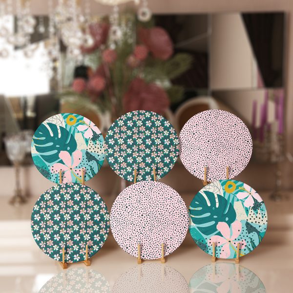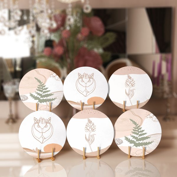 6’lı Pastel Renkli Yosun Çizimleri Özel Tasarım Servis Altlığı & Supla