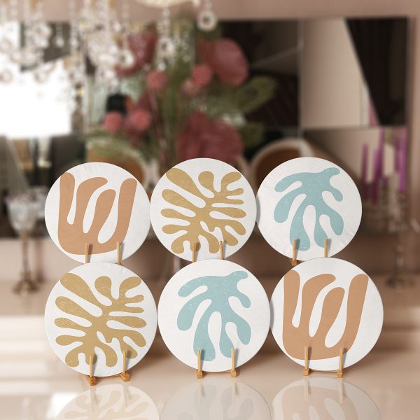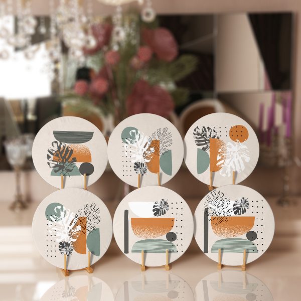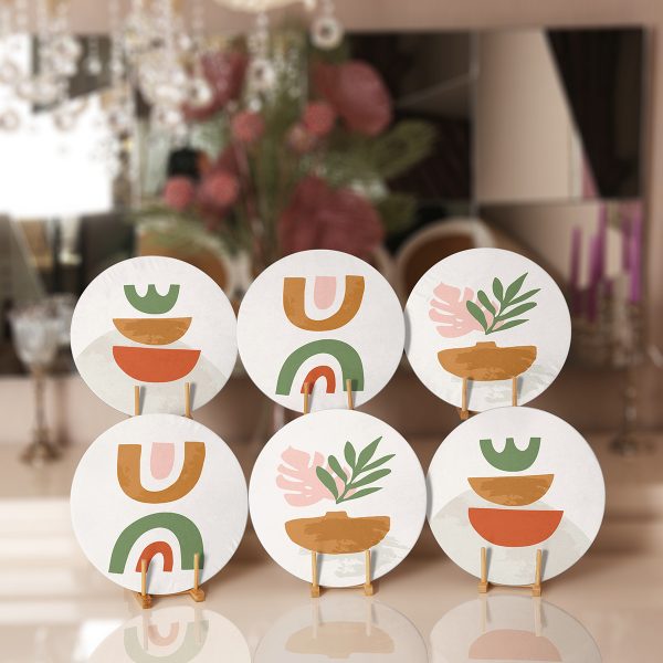 6’lı Soyut Renkli Yosun Çizimli Servis Altlığı & Supla