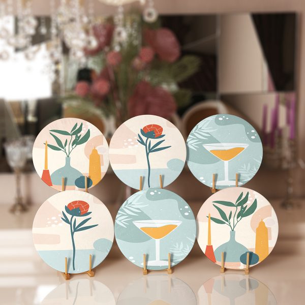 6’lı Soyut Çizimli Özel Tasarım Servis Altlığı & Supla