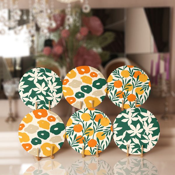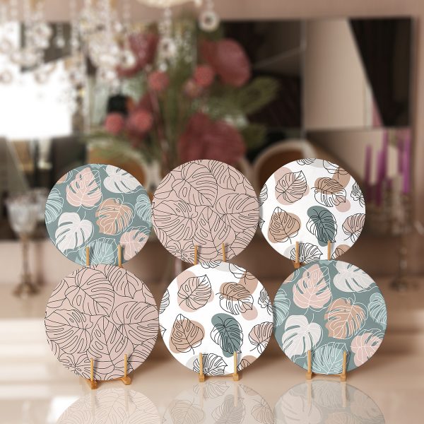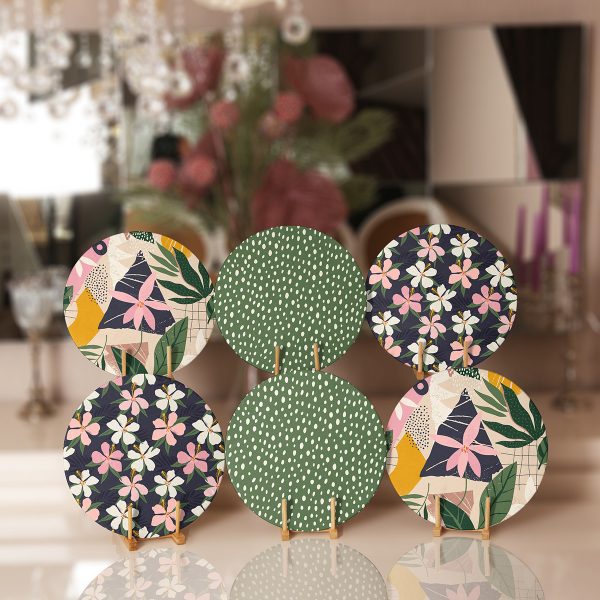 6’lı Renkli Zemin Üzerinde Yaprak Desenli Servis Altlığı & Supla