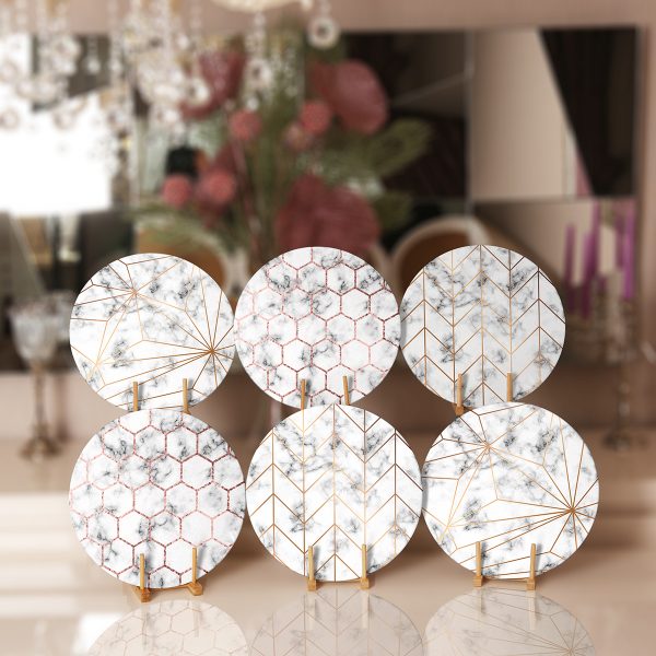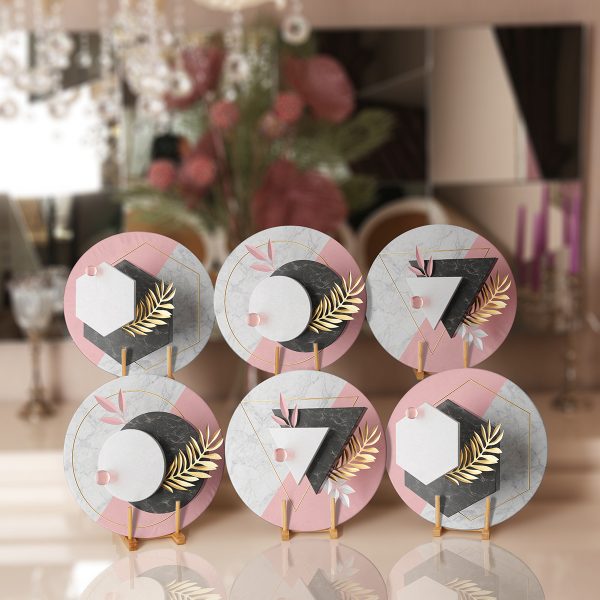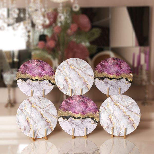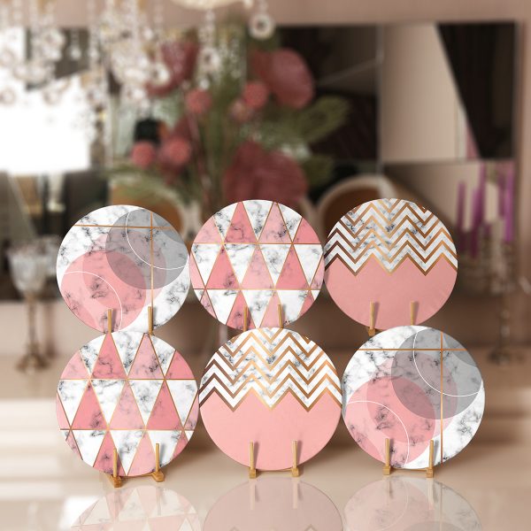 6’lı Pembe & Mermer Desen Tasarımlı Servis Altlığı & Supla