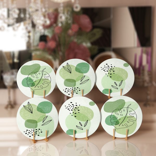6’lı Yeşil Yaprak Tasarımlı Servis Altlığı & Supla