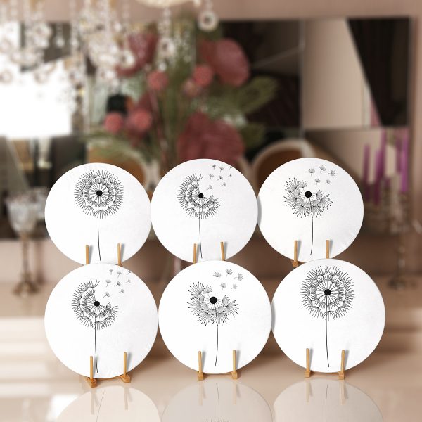 6’lı Siyah Beyaz Karahindiba Özel Tasarımlı Servis Altlığı & Supla