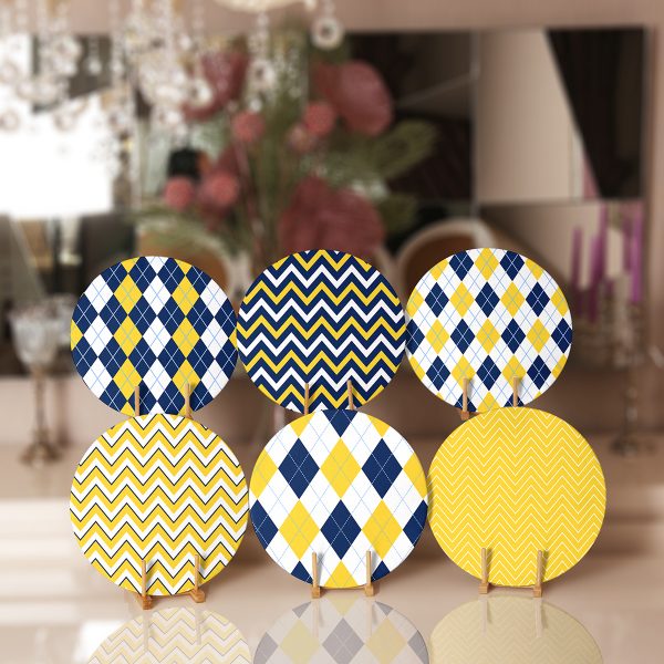 6’lı Sarı Lacivert Zigzag & Ekose Tasarımlı Servis Altlığı & Supla