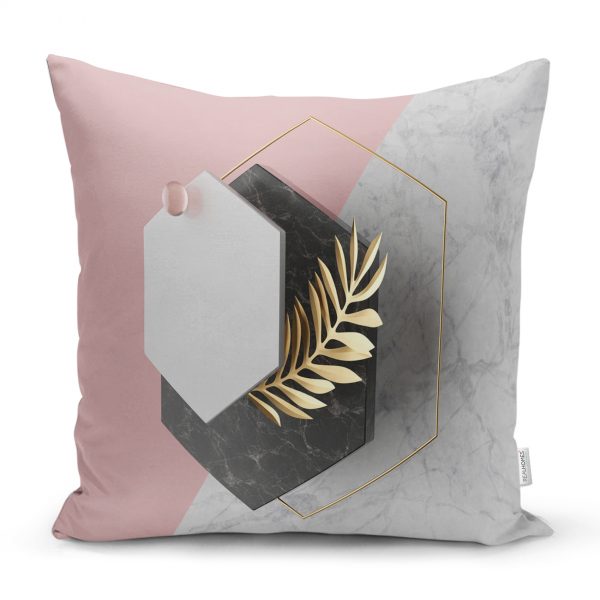 Gold ve Pembe Renkli Mermer Desenli Modern Yastık Kırlent Kılıfı