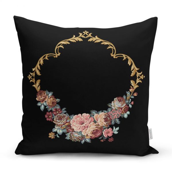Siyah Zeminde Otantik Çiçekler Özel Tasarım Yastık Kırlent Kılıfı
