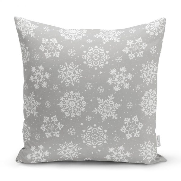 Gri Zeminli Kar Taneleri Temalı Modern Tasarım Dekoratif Yastık Kırlent Kılıfı