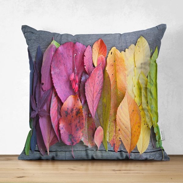 Suluboya İnce Yapraklar Modern Tasarımlı Dekoratif Raşel Kadife Yastık Kırlent Kılıfı