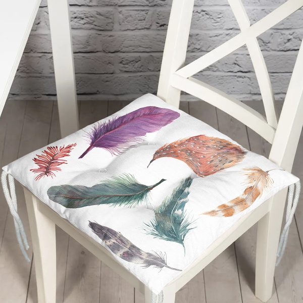Kuş Tüyü Pofuduk Kare Sandalye Minderi 40x40cm Düğmeli