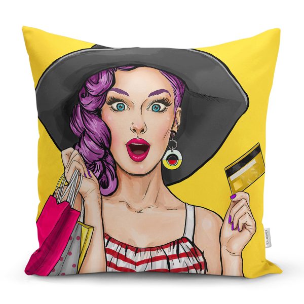 Pop Art Resimli Dijital Baskılı Dekoratif Yastık Kırlent Kılıfı