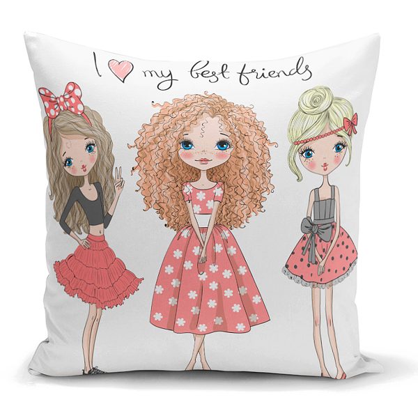 Best Friends Temalı Dijital Baskılı Modern Yastık Kırlent Kılıfı